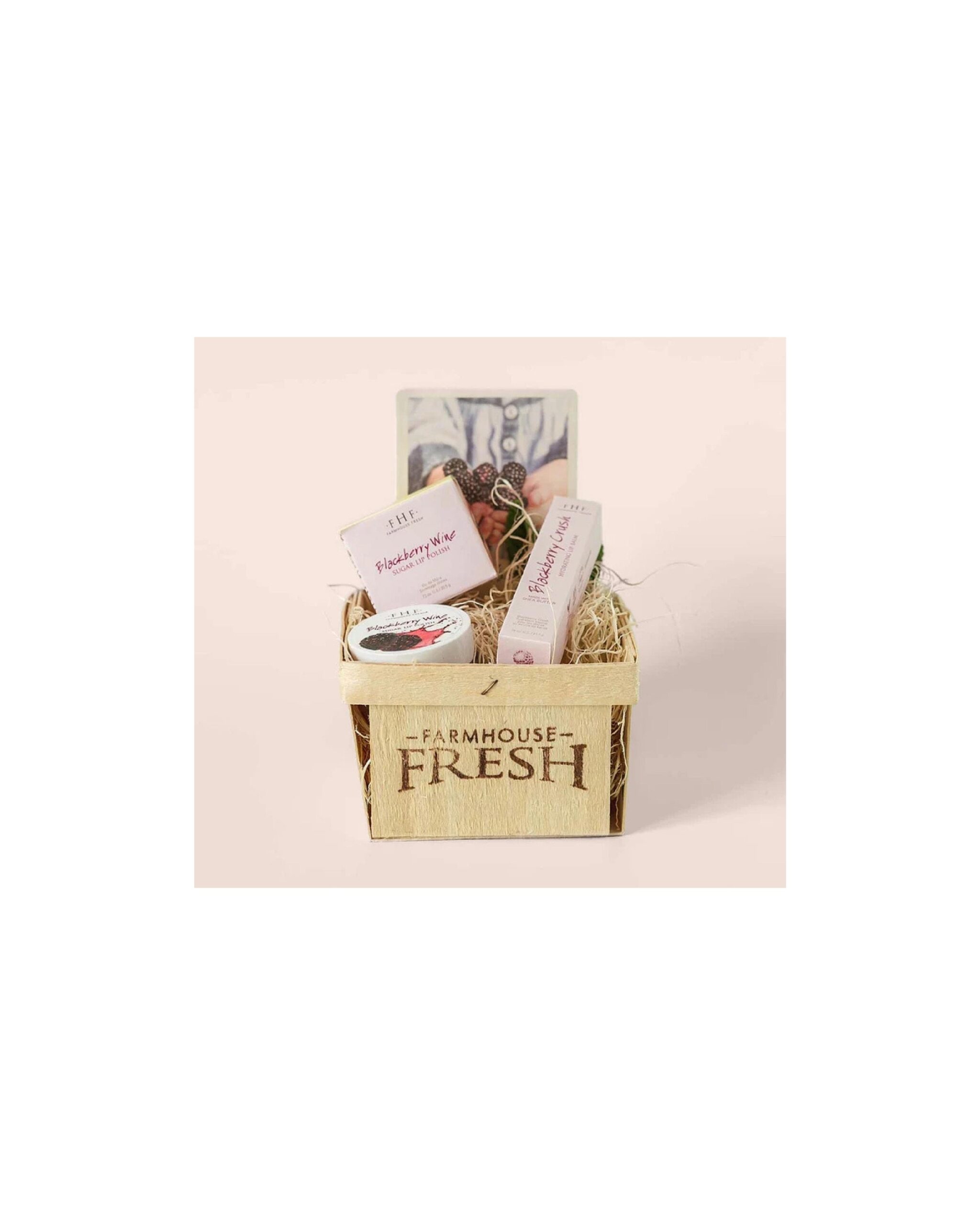 A splash of juicy purple vibes! Two of our blackberry lip favorites in one giftably gorgeous farm basket. Polish your pucker deliciously smooth with U.S. grown cane sugar, juicy organic Oregon blackberries, and a splash of rich Texas wine.