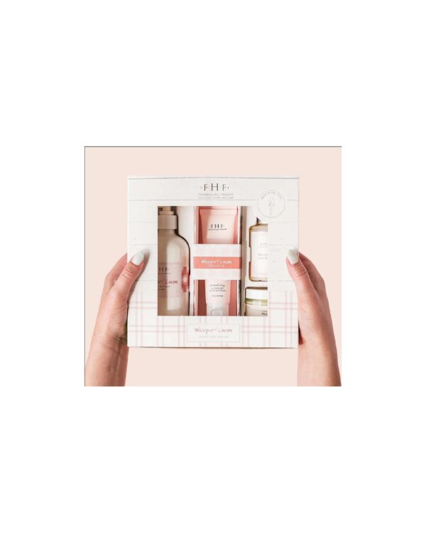 This deluxe boxed set is loaded with our delicious white velvet, whoopie pie dessert-scented favorites, including a full-size body cream and hand cream, and travel-size body wash and candle. We’re scenting every aspect of life – from shower to room with this must-have, ribbon-adorned set.